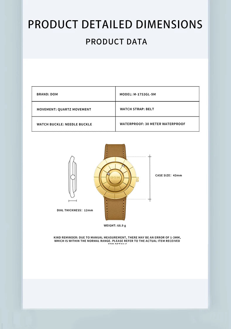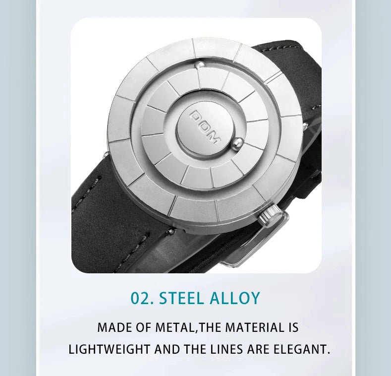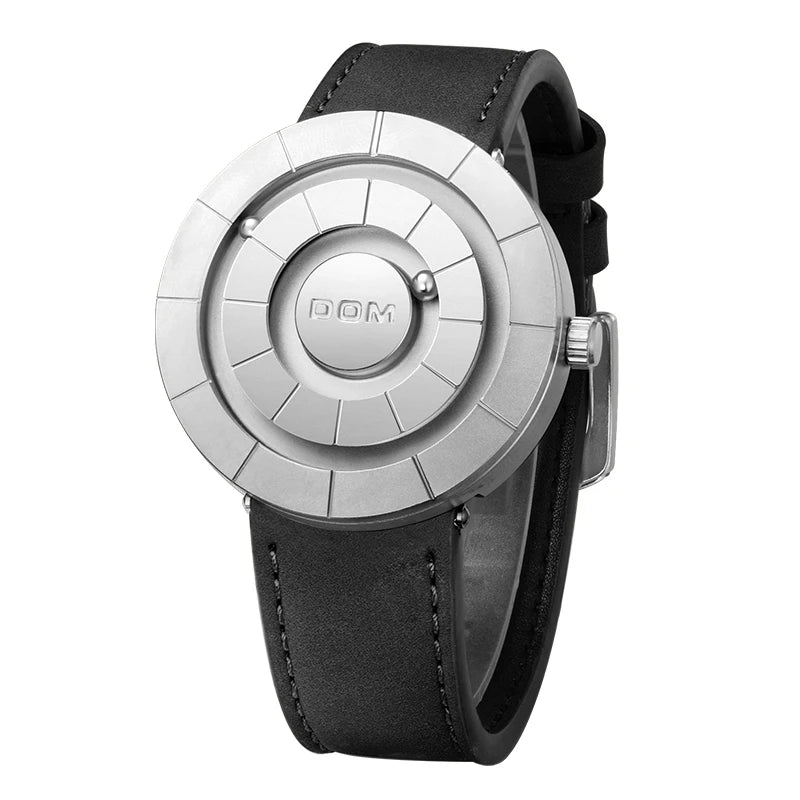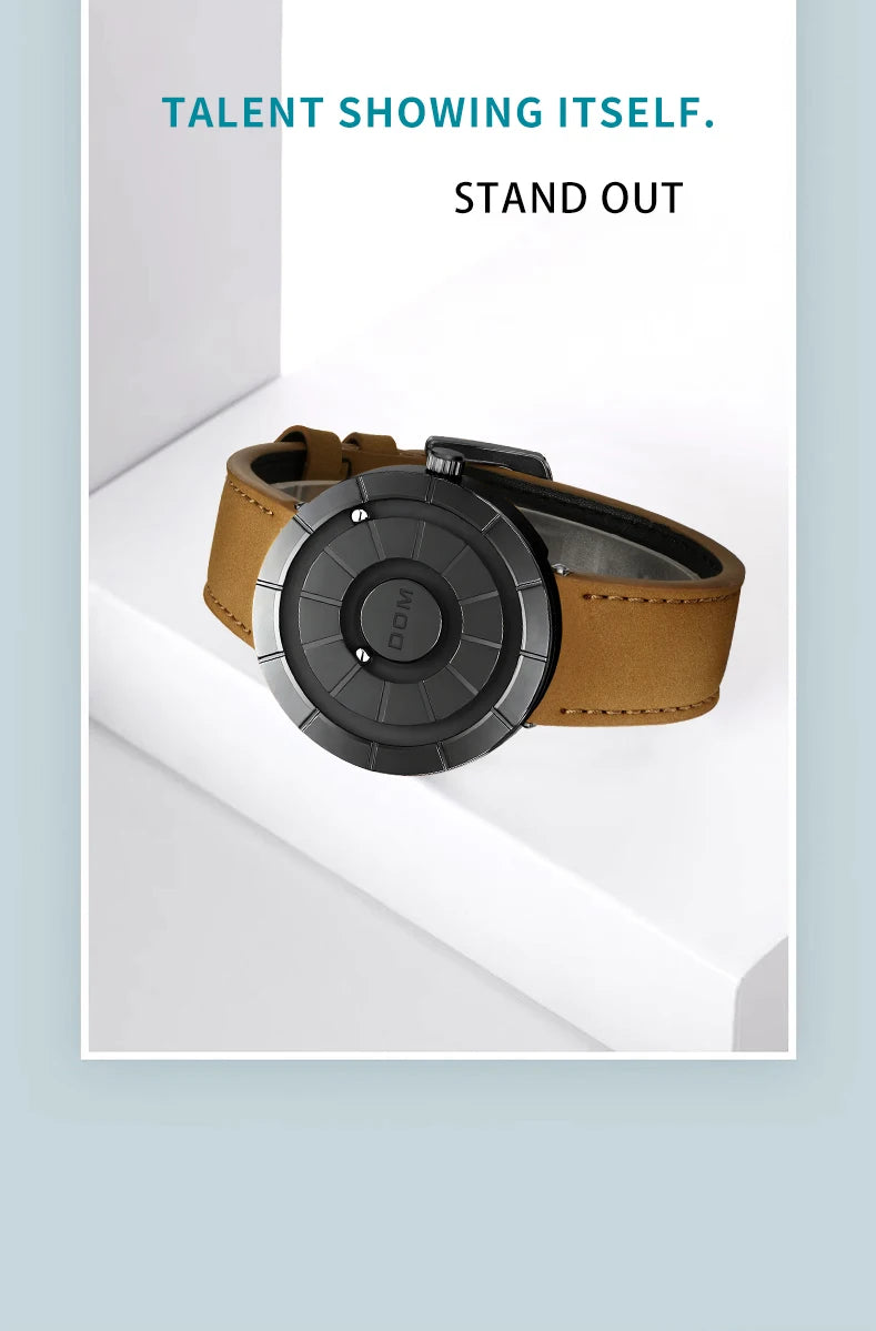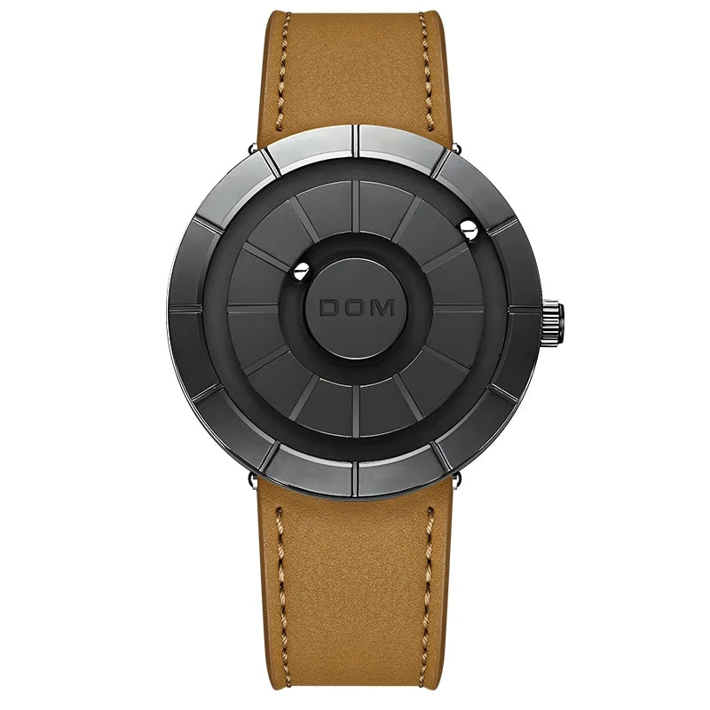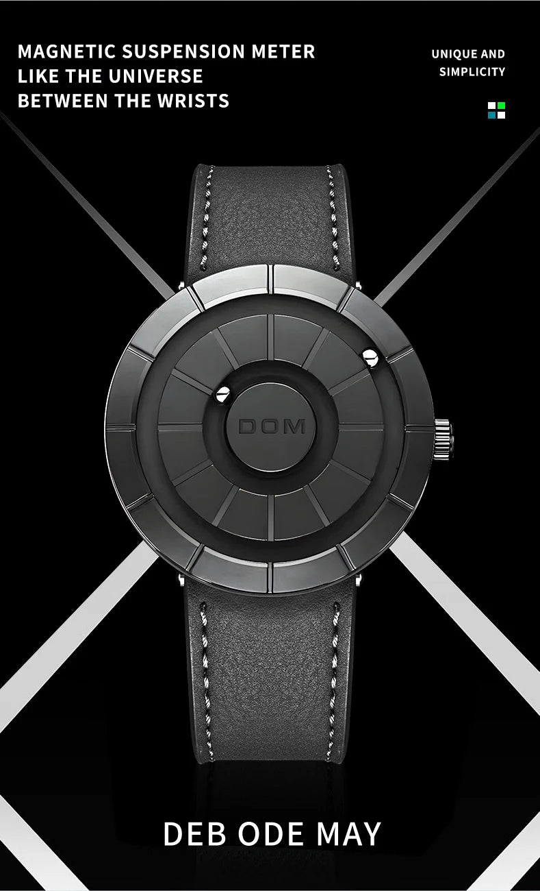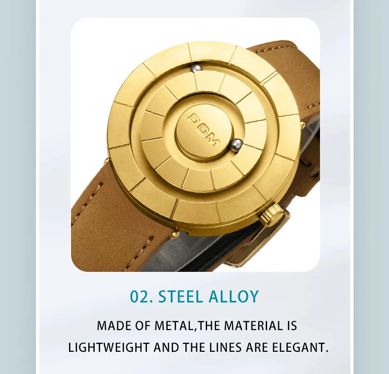 DOM 1753 Desain Kreatif Jam Tangan Pria Jam Tangan Magnetik 3D PVD Jam Tangan Kuarsa Tahan Air Tali Kulit Dial Emas Hitam