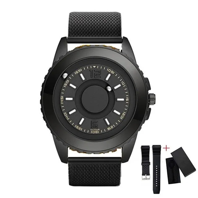 Eutour đồng hồ màu đen đồng hồ thạch anh hình quả cầu từ tính Đồng hồ đeo tay nam chống nước Đồng hồ nam dây nylon thương hiệu hàng đầu sang trọng 2019